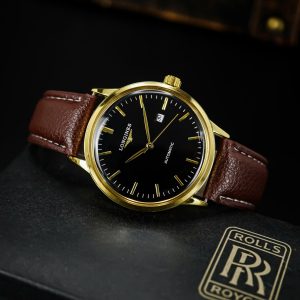 - Mặt số: Trắng ngà hoặc đen, thiết kế vintage với logo Longines cổ điển.